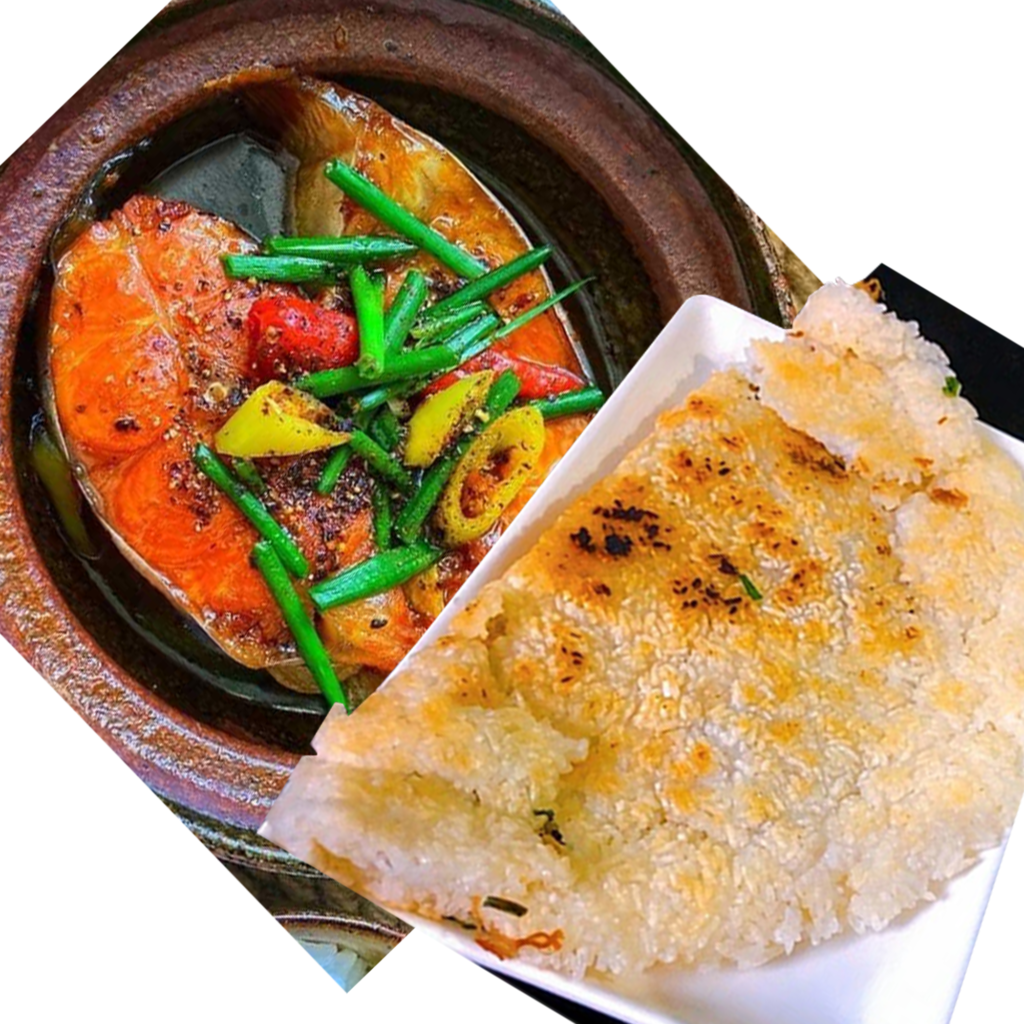 Crispy Rice with Pork Belly – Braised Catfish in Clay Pot with Boiled Vegetables (For 2)